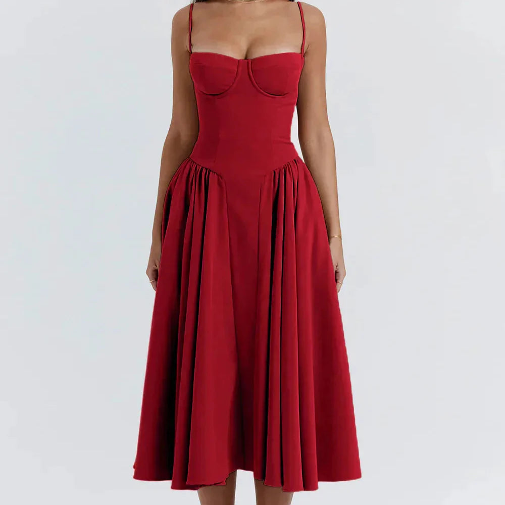 Le décolleté en cœur met délicatement en valeur la poitrine, tandis que les bretelles fines apportent une touche de féminité discrète. La longueur mi-cuisse et la coupe ajustée en font un choix parfait pour les occasions spéciales, les soirées élégantes ou un dîner en tête-à-tête.