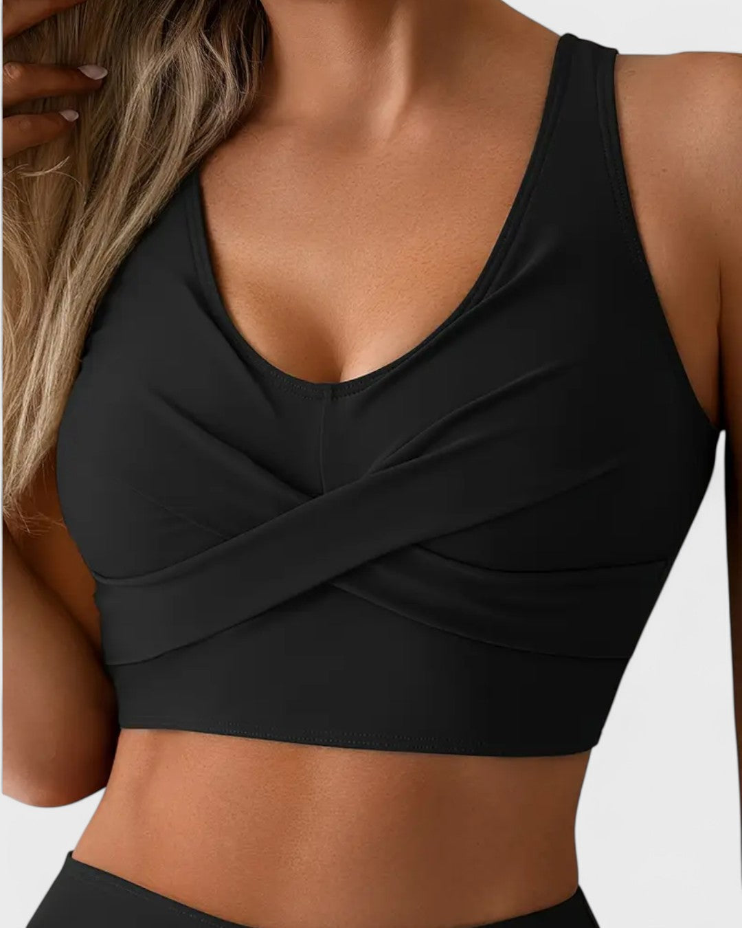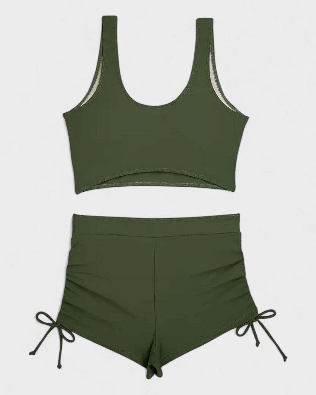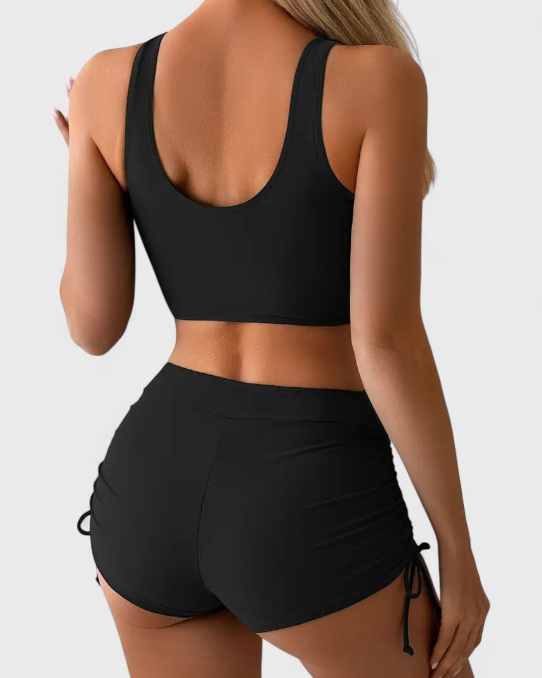 Le tissu extensible et la coupe sportive rendent cet ensemble parfait non seulement pour le farniente, mais aussi pour des activités comme le yoga ou le beach-volley.