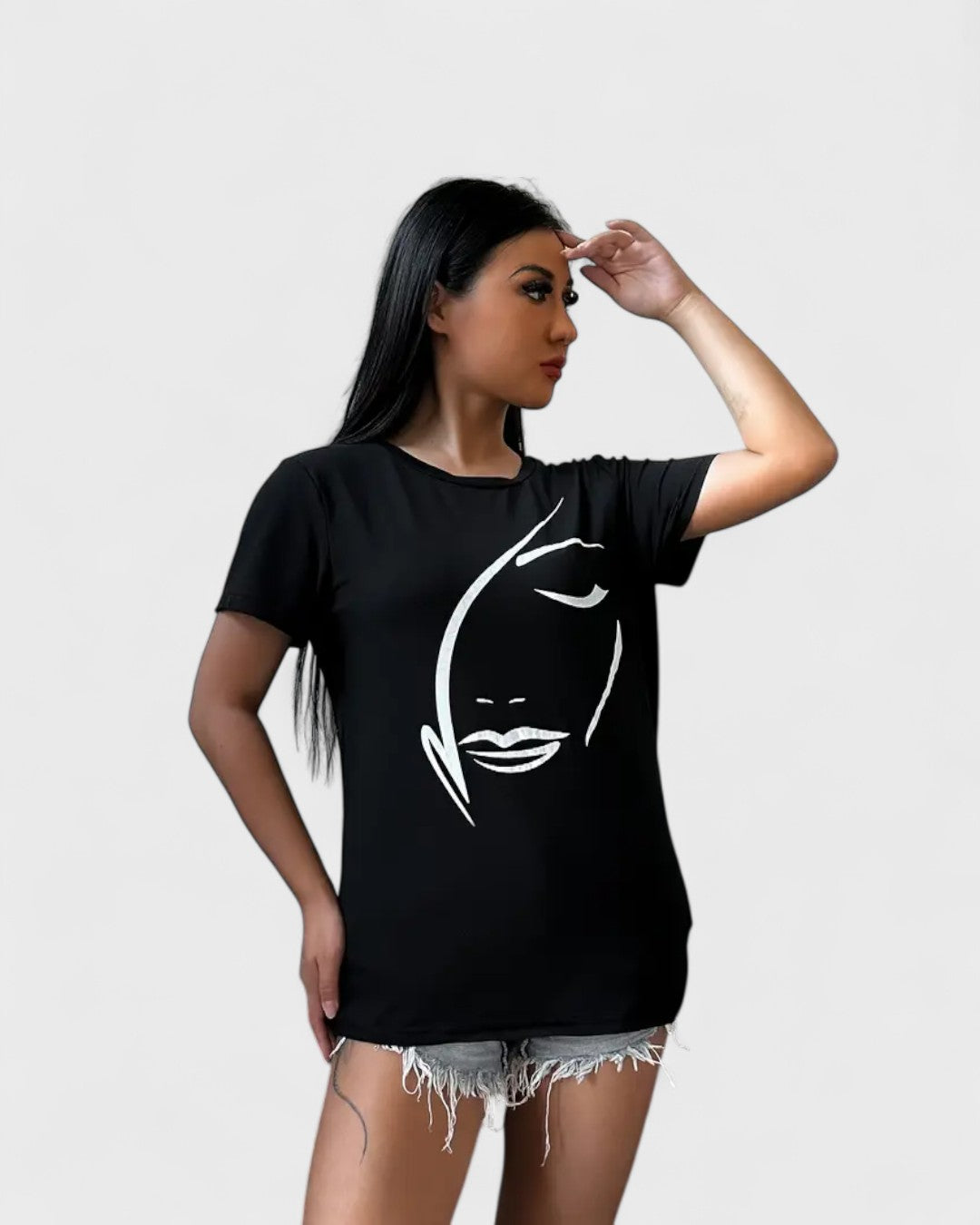 Le visuel stylisé d’un visage féminin offre une touche artistique unique à vos tenues. Plus qu’un simple t-shirt — une déclaration d’esthétique et de force féminine.