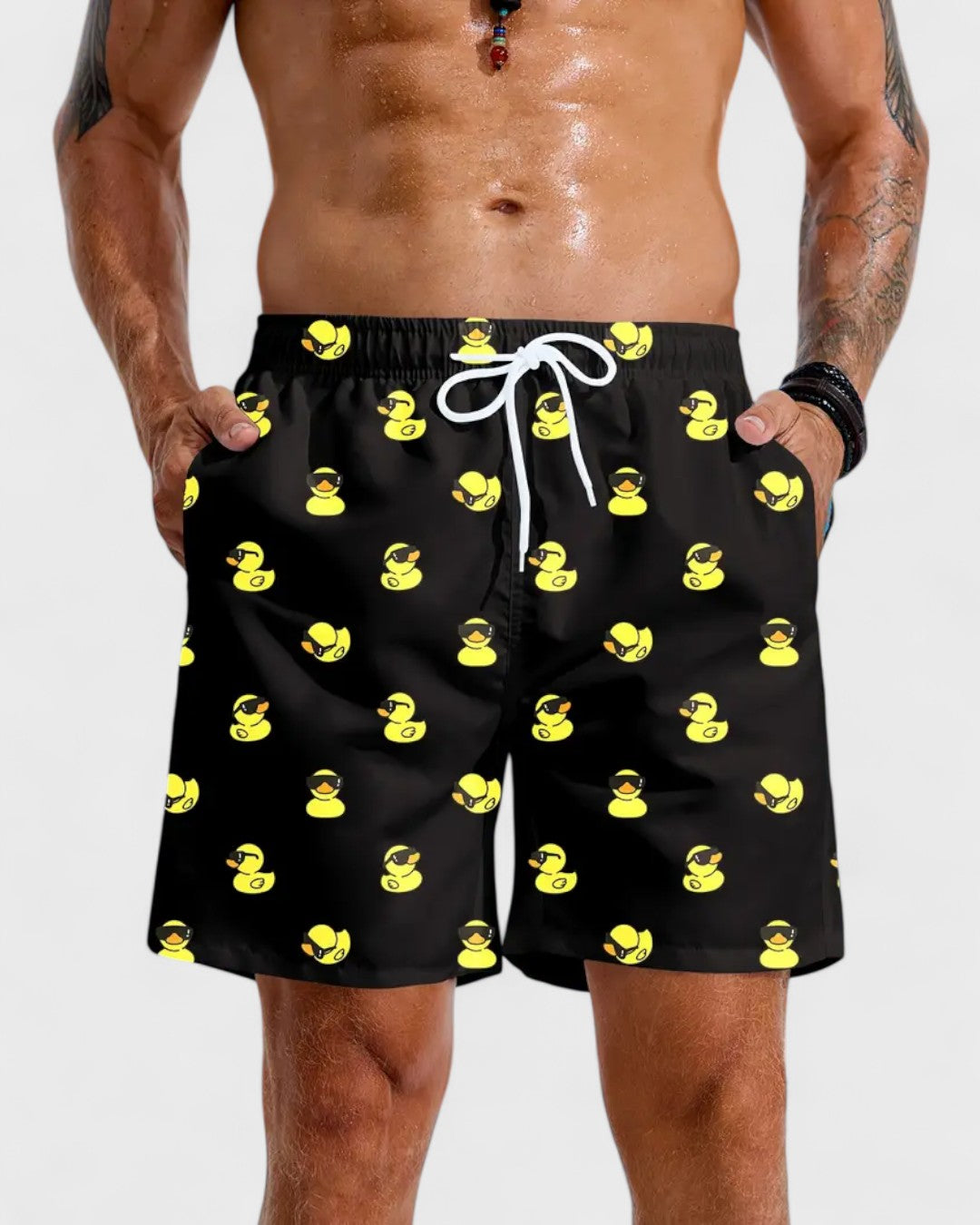 Ce short n’est pas qu'un maillot de bain – c’est une déclaration d’esprit libre. Les canards en lunettes de soleil garantissent des sourires partout où vous allez.